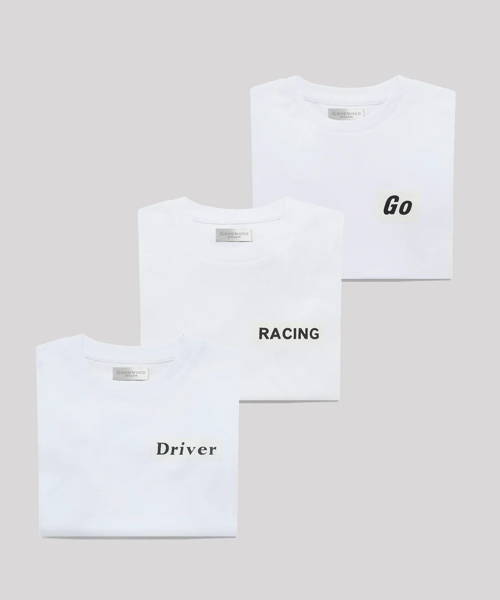 Please see size guide for details. Also in the collection are the 'Driver' and 'Racing' T-Shirts.